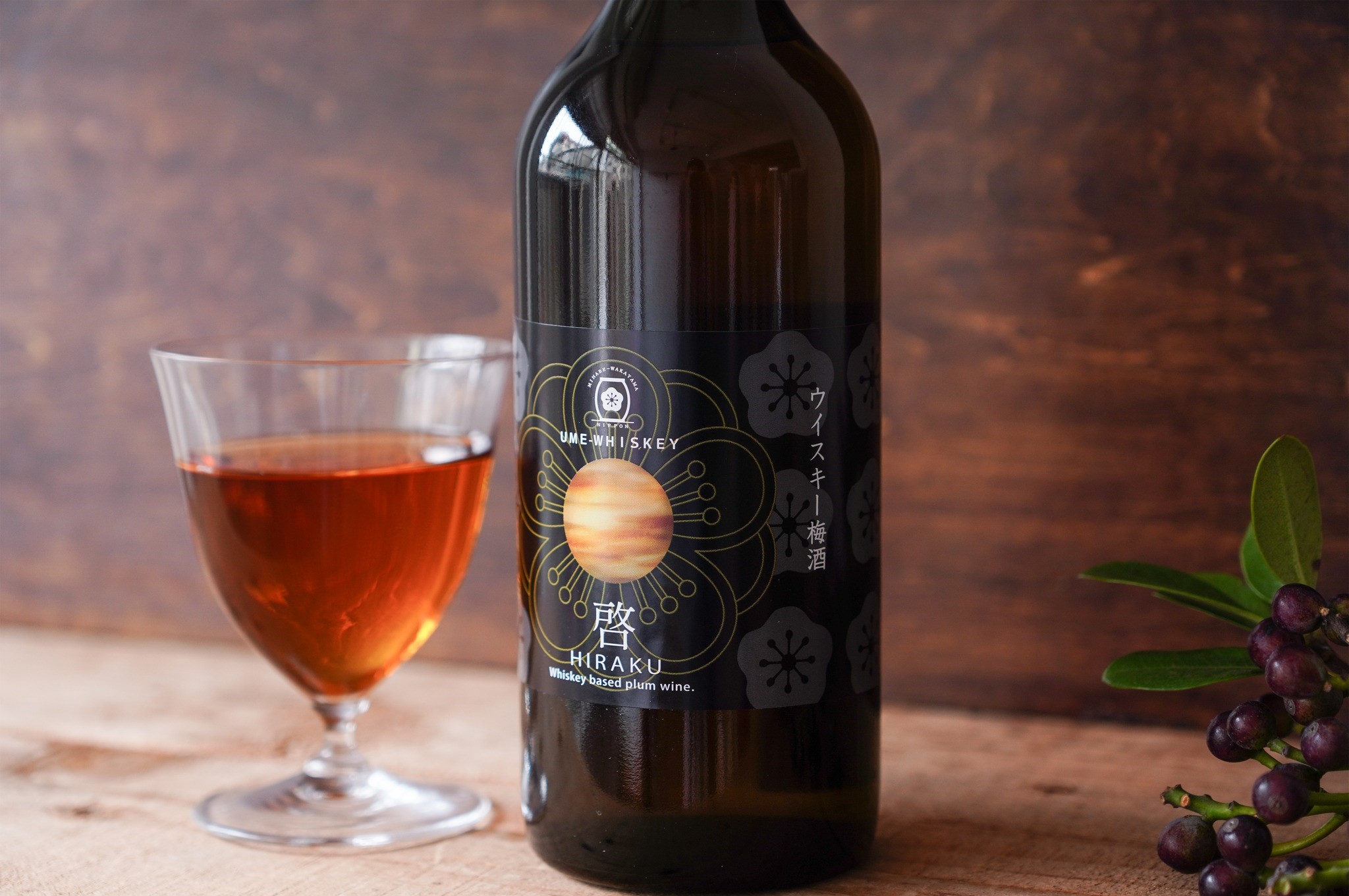 国内製造のウイスキーに完熟南高梅を漬け込み、さらに芳醇に、深く、まろやかな仕上がり。みなべ町産の自社農園の完熟南高梅を、国内製造のウイスキー「あかし」に少量の氷砂糖で漬け込みました。甘さを控えた度数30%のストロングな梅酒です。